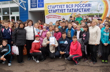 С «Кросс нации» мы шлем привет!В рамках Всероссийского дня бега учащиеся, педагоги и администрация приняли участие в массовом забеге «Кросс Татарстана 2013». Традиционно на школьном стадионе прошли забеги учащихся 1-4 классов, маршрут для всего коллектива проходил по улице Ленина от «Татарской гимназии» до стадиона «Энергия», на котором проходило награждение. Участники забега очередной раз показали свое неравнодушие к здоровому образу жизни, и как гласит старая поговорка: «Кто любит спорт, тот здоров и бодр».