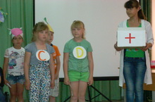 А сегодня в нашем лагере прошёл музыкальный час «Пропаганда здорового образа жизни» Каждый отряд подготовил клипы под названием «Витаминная семья»:1 место заняли II,V и VI отряды. 2 место разделили I, III и IV. В городском мероприятии игра по станциям «Зоологические забеги» команда участников III и VI отрядов заняли I, II, III места по станциям.