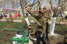 В рамках празднования Дня Победы педагоги, учащиеся и родители приняли участие в организации и проведении инсталляции «Битва под Москвой». К данному мероприятию были изготовлены красочные макеты Спасской башни, противотанковые «ежи» и другое. Ребята горожанам рассказывали интересные факты о знаменитой битве, каждый мог принять участие в параде, собрать посылку на фронт и поучаствовать в сражении.