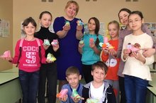 В рамках весенних каникул в школе проходят различные мероприятия: дополнительные занятия, посещают МЦ «Космос», ЛД «Яшълек», общешкольные мероприятия. На втором этаже в фойе развернула свою работу «Мастерская народных промыслов», каждый может принять участие в мастер-классе. Проводит мастер-класс Е.В.Юрок. Ребята создают 3Д модели обуви, а потом ее украшают с помощью аппликации, лент, пуговок и т.д.