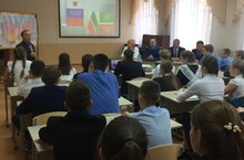 В МБОУ «ЗСОШ №3» для учащихся 7 и 8 классов прошел необычный урок обществознания по теме «Правовая грамотность несовершеннолетних». Перед учащимися выступил Глава Заинского муниципального района Разиф Галиевич Каримов и Городской прокурор, старший советник юстиции Ринат Раисович Каримов. -