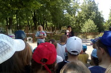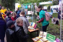 Экскурсия по парку культуры и отдыха имени Р.Ш.Фардиева. Дети ознакомились с опытом работы дворовых лагерей «Литературная скамейка», Хит парад, «Лучшие книги детства» с литературными героями в костюмах, баннер «Библиотека – открытый мир», Буккроссинг, Либмоб.