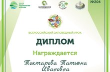 11 января 2017 года, в День заповедников и национальных парков по всей стране стартовала акция «Заповедный урок». В связи с этим в МБОУ "ЗСОШ № 3" учителем биологии Токтаровой Т.И. был проведен Всероссийский заповедный урок для обучающихся 9 класса. За проведение Всероссийского заповедного урока "Заповедные острова. Сохраняя будущее." Токтарова Т.И. награждена дипломом. -