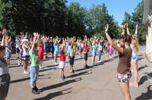 “Кояшкай” (“Солнышко”) мәктәп яны балалар лагеры үзенең эш көнен зарядкадан башлый. Көн дәвамында төрле спорт чаралары уздырыла.
