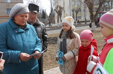 Учащиеся 3а класса выходили на улицу, они раздавали мини-разговорники, буклеты акции, беседовали с жителями города, были в торговой точке "Жар-свежар", в аптеке. Учащиеся говорили об акции, читали стихотворения о родном языке на татарском и на русском языках. (учитель - Халиуллина Х.А.)
