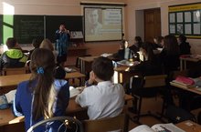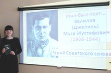 В 6б классе проводили классный час, посвященный творчеству и жизни героя-поэта М.Джалиля “Гомерем минем моңлы бер җыр иде...” (Жизнь моя песней звенела в народе… (учитель - Сабирова Ф.Х.) Учащиеся защищали свои презентации, говорили о борьбе за свободу советских пленных, об истории Моабитской тетради. Звучали стихи «Моей дочери Чулпан», «Мои песни», «Последняя песня», «Один совет» и др.