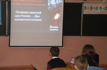 3 декабря Киявина Н.А. в 1А классе провела классный час «Имя твое неизвестно, подвиг твой бессмертен», посвященный памятной дате России — Дню неизвестного солдата. В октябре 2014 г.была внесена поправка в ФЗ «О днях воинской славы и памятных датах России» и установлена новая памятная дата — 3 декабря — День Неизвестного солдата. Исторически, в ходе войн, множество солдат гибло и их останки не были или не могли быть опознаны. В XX веке, после окончания кровопролитной Первой мировой войны начала образовываться традиция, по которой нации и государства устанавливают памятники Неизвестному солдату, символизирующие память, благодарность и уважение всем погибшим солдатам, чьи останки так и не были идентифицированы. Обычно такие памятники ставятся на могиле, в которой находятся останки погибшего солдата, личность чья неизвестна и считается невозможным её установление.