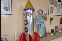 12 апреля исполнилось 50 лет со дня первого полёта человека в космос.В нашей школе выставка работ учащихся,посвященная этой знаменательной дате.На выставке были представлены различные модели ракет и рисунки о космосе.