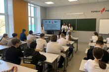 Профориентационная встреча со студентами инженерно-экономического колледжа при КФУ города Набережные Челны. Студенты ознакомили учащихся со специальностями, которым обучают в колледже, сроками обучения и количеством бюджетных мест. Рассказали какое дополнительное образование дается в колледже.