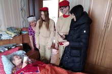 Педагог-библиотекарь Каримова Л.Г. с юнармейцами школы поздравили тружеников тыла микрорайона и вручили юбилейных медалей «75 лет Победы в Великой отечественной войне 1941-1945 гг.».