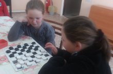 Чем можно заняться в морозы на каникулах? Ну, конечно, поиграть в шашки или шахматы, чем и занялись ученики, пришедшие в этот день в школу. Игра требует внимательности, ум напряжен в поисках выгодных позиций. Успехов вам, ребята!