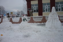 На улице не по зимнему тепло, моросит дождь. Но зиму с ее забавами никто не отменял! На постройку снежных фигур вышли наши школьники, начиная с первоклассников. Ребята лепили из снега героев полюбившихся им мультяшек, снеговиков, и конечно, фигуру Деда Мороза.