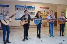 Интересное мероприятие было организовано сегодня работниками клуба для воспитанников пришкольного лагеря. Ребятам были преподнесены уроки игры на гитаре. Сначала желающие познакомились с инструментом, затем попробовали себя в роли музыкантов. Интересно извлекать звуки, зажимая то одну, то другую струну, поделился впечатлением Зиннатулин С. И, конечно, как же обойтись без пения под гитару. Девочки, посещающие кружок игры на гитаре, с удовольствием представили несколько песен вниманию публики, а ребята с неменьшим удовольствием подпевали им.