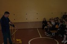 О правилах поведения на водных объектах рассказал инспектор МЧС по маломерным судам Атласов В.А. Он ответил на вопросы, можно ли выходить на тонкий лед, где лед толще- у берега или в середине озера, можно ли уже кататься на льду? Валентин Александрович и сам проверял у ребят знания: что делать, если увидели тонущего человека? Обязательно позвонить в МЧС и позвать взрослых. Как проверить, лед прочный или нет? Постучать крепкой палкой, если не треснет, значит- прочный. А вообще, подытожил нспектор, лучший лед- это лед в ледовом дворце.