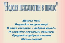 В ходе недели психологии в школе прошли интеренсы тренинги "Настоящая дружба" и "Кто я такой". Педагоги организовали выставку рисунков "Школа- это мы", выставку высказываний известных психологов