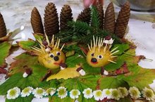 Замечательной получилась выставка поделок из лесного материала. Оригинальные букеты роз, сотворенные из осенних листьев, лесные жители из сосновых шишек, целые сюжеты лесного мира - творцы постарались на славу! В мероприятии приняли участие учащиеся начальных классов.