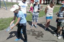 В этом году лето не балует жаркими днями. Но купаться-то хочется! Педагоги организовали для воспитанников лагеря соревнования "Водная эстафета". Дети, вооружившись бутылками с водой, выполняли массу интересных заданий: нарисовать водой на асфальте что-либо, достать водной струей до цели и самое классное задание, побрызгать как можно большее количество соперников. Было очень весело!