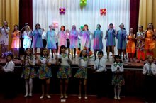 Красочной концертной программой "Мы - вместе" в рамках городского Фестиваля народного творчества порадовали жителей микрорайона Мирный педагоги школы. Приветствовали гостей конферансье Мубаракшина Г. и Афанасьев Ю. Каких только номеров не было" И сценка "В поисках учителя", замечательная песня "Зимушка- зима" и зажигательный танец "Кадриль". В номинации "Минута славы" И.В. Хусаинова, учитель русского языка и литературы, представила свое творчество- изящные вязаные шали. Оригинальную музыкальную сценку разыграли педагоги в номинации "Точь- в точь". Заключительным номером стала песня "Россия" в исполнении коллектива школы.