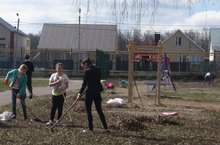 Дружно вышли на уборку школьной спортивной площадки ученики 7 го класса. Это излюбленное место игр школьной малышни. Семиклассники сгребали прошлогоднюю листву и мусор, разровняли песчаную поверхность. На спортивной площадке- чисто!