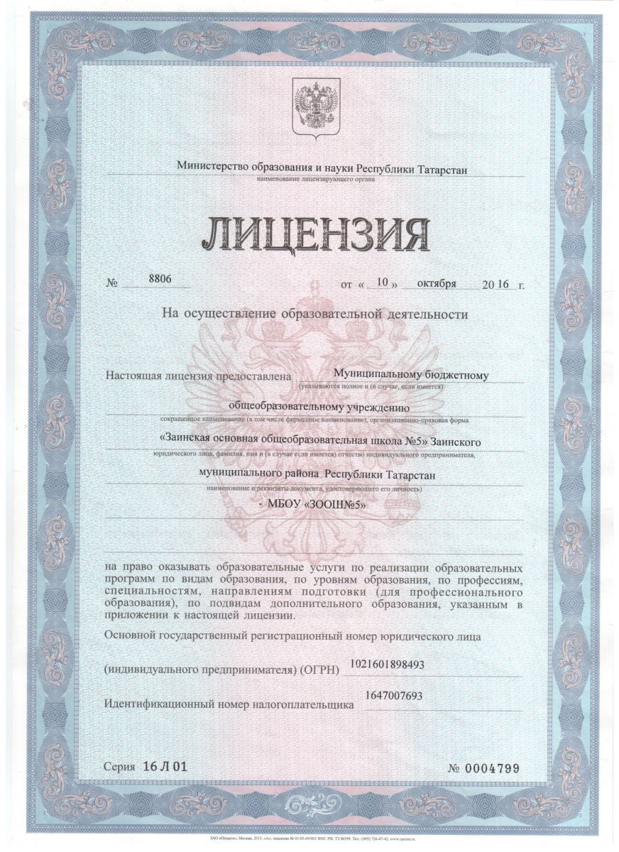 Муниципальное бюджетное общеобразовательное учреждение «Заинская основная общеобразовательная школа №5» Заинского муниципального района РТ