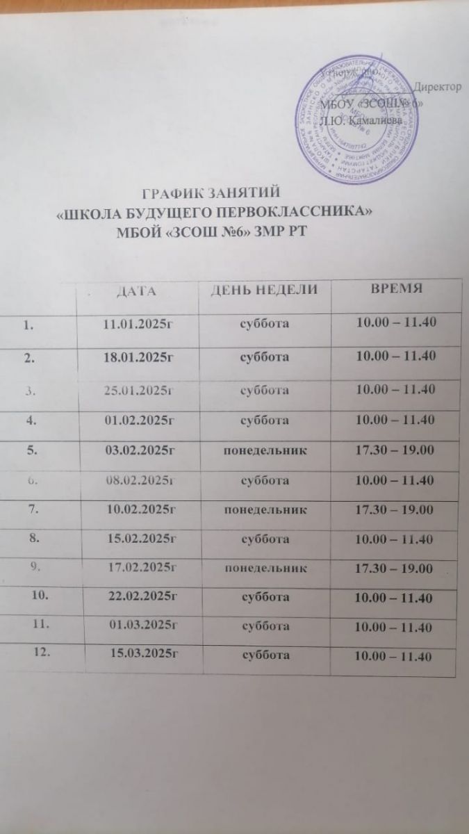 Уважаемые родители! Здесь вы можете ознакомиться с графиком занятий "Школа будущих первоклассников" в МБОУ "ЗСОШ №6" ЗМР РТ.