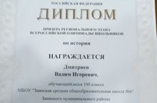 С 16 по 19 января 2019г. в Казани прошел региональный этап Всероссийской олимпиады школьников по истории, в которой Дмитриев Вадим, ученик 10Б класса стал призером! Поздравляем!!!