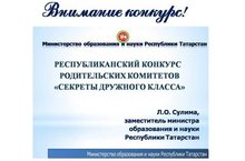 Конкурс родительских комитетов «Секреты дружного класса» (далее - Конкурс) проводится МО и Н РТ и Общероссийской общественной организацией «Национальная родительская ассоциация социальной поддержки семьи и защиты семейных ценностей».