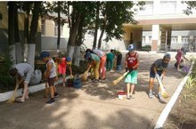 В рамках трудового воспитания, ежедневно обучающиеся нашей школы приходят на трудовую отработку. Дети занимаются благоустройством школьной территории.