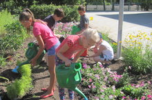 Учащиеся начальной школы начали проходить летнюю практику на пришкольном участке. Дети поливают цветы, рыхлят землю. А все для того, чтобы в нашей школе было красиво и уютно даже во время больших летних каникул. Труд красит человека!!!