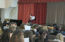 Так же учащиеся встретились с ветераном Великой Отечественной войны Королевой Ниной Сергеевной. Она рассказала ученикам седьмых классов о своей фронтовой жизни, и о тяготах войны. «Когда началась война, я окончила девятый класс. Мы собрались всем классом после сдачи последнего экзамена и строили планы на будущее – оставался всего год учебы. Нам так и не удалось воплотить свои мечты в жизнь.»
