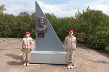 Юнармейцы отряда им. Героя Советского Союза Николая Майкова встали в почетном карауле, ребята возложили цветы к обелиску в с. Старый Токмак. -
