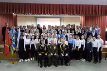 19 февраля в актовом зале школы в честь Дня Защитника Отечества в рамках проведения месячника оборонно-массовой работы к 75-летию Победы прошел «Урок Мужества». Навстречу к семиклассникам пришли ветераны военной службы капитан второго ранга Валентин Атласов, подполковник Александр Афанасьев, старший прапорщик Сергей Исаков.