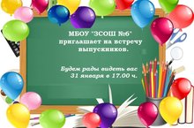МБОУ "ЗСОШ №6" приглашает на встречу выпускников! Будем рады видеть вас 31 января в 17.00 ч.