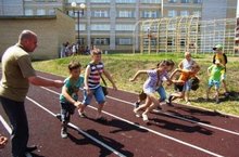 На территории школы здоровья построен современный спортивный стадион, где дети лагеря играют в футбол, баскетбол, катаются на качелях, участвуют в различных подвижных играх.