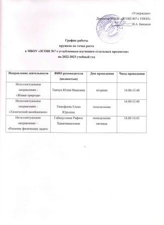 График работы кружков центра "Точка роста" в МБОУ "ЗСОШ №7 с УИОП" на 2022-23 учебный год