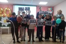 В рамках клуба выходного дня с целью пропаганды здорового образа жизни состоялось мероприятие на тему «Мы за ЗОЖ всей семьей!». В ходе мероприятия дети просмотрели презентацию и собрали ромашку «Здоровый образ жизни», в которую вошли: личная гигиена, правильное питание, режим дня, чистота – залог здоровья, нет вредным привычкам, движение жизнь, закаливание, положительные эмоции и др. Далее ребята, разделившись на команды, участвовали в спортивных состязаниях. Закончилось мероприятие игрой в футбол. Все участники получили сладкие призы.