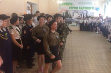 В рамках Месячника оборонно-массовой работы среди учащихся 2-9 классов школы был проведен конкурс «Смотр строя и песни», посвященный Дню защитника Отечества. Программа Смотра строя и песни включала: общее построение, рапорт командиров отрядов, торжественный марш строем с песней. Открыла смотр ведущая – Задавина И.В.; поздравила всех с наступающим праздником, а также напомнила что сегодня отмечается 29 годовщина вывода войск из Афганистана. С напутственными словами к ребятам обратилась директор школы Мойкина Г.В. Конкурс оценивало жюри, в состав которого входили педагоги школы. Рапорт командиры отрядов сдавали социальному педагогу, майору в отставке Бикташевой С.Т.: Критериями оценки были: дисциплина строя, внешний вид, сдача рапорта командира, выполнение строевых приёмов, строевой шаг, четкость исполнения песни. Пока жюри подводило итоги, учащиеся школы исполняли песни военных лет.