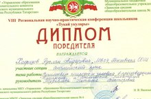 Сегодня в СОШ № 6 г. Заинска состоялась региональная научно-практическая конференция "Тукай укулары". Нашу школу представляли обучающиеся 5 и 7 классов в секции английский язык. Обучающийся 5 класса Хафизов Руслан получил Диплом победителя (учитель Журавлева Н.В.) Поздравляем!!!