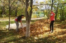 Учащиеся школы приступили к уборке школьной территории от листьев.