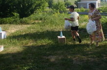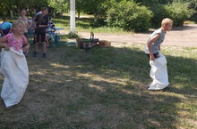 Утро началось с праздника старины. Дети с удовольствием окунулись во времена своих бабушек. Вспомнили старинные забавы, игры. Подустав от игр, отправились наводить порядки на пришкольном участке: пропололи грядки, полили овощи. Домой уодили под русские народные песни.