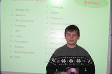 В рамках декады математики, информатики и физики для учащихся 8 класса прошла интеллектуальная конкурс-игра "Инфомания". Каждый ученик мог проверить свои знания в трех этапах игры. Разрыв между участниками составлял несколько секунд. В полуфинал вышли Минхазиева А., Филипов М., Николаев А. А по итогам финального тура победителем конкурса стал Николаев Андрей. Поздравляем!