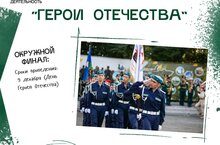 - военно-патриотическое — «Герои Отечества», Слет поисковых отрядов «Никто не забыт», «Гвардеец»;