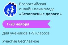 В целях информационного сопровождения национального проекта «Безопасные качественные дороги» в период с 1 по 20 ноября на образовательной онлайн-платформе Учи.ру реализуется Всероссийская онлайн-олимпиада «Безопасные дороги» для учеников 1–9 классов. Олимпиада направлена на повышение осведомленности школьников и их родителей в вопросах безопасности дорожного движения. Интерактивные задания позволяют проверить знание учениками младшей и средней школы правил дорожного движения и понимание безопасного поведения на дороге в ситуациях, когда они выступают в роли пешехода, пассажира транспортного средства или водителя велосипеда, а также получить новую информацию в игровой форме. Участие в олимпиаде бесплатное. Обучающиеся нашей школы принимают активное участие в олимпиаде.