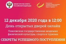 12 декабря 2020 года в 12.00 часов Академия проводит онлайн-мероприятие День открытых дверей. В программе: выступление руководства Академии, ответственного секретаря приемной комиссии, подробный инструктаж по поступлению. Также каждый зарегистрировавшийся на онлайн-мероприятие получит бесплатный доступ к электронной библиотечной системе и список литературы для подготовки к поступлению в Академию. Ссылка для регистрации https://www.sportacadem.ru/registraciya_na_den_otkrytyh_dverej/.