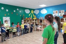 Участники отряда ЮИД "Зелёный огонек" выступили перед детьми ДОУ «Родничок». На данном мероприятии дошкольники ознакомились с правилами дорожного движения, которые продемонстрировали юные инспектора движения в виде сценического представления. С детьми были проведена игра «Красный, желтый, зеленый» на знание сигналов светофора , в завершении мероприятия юидовцы станцевали флешмоб с дошкольниками. Дети играли, отгадывали дорожные знаки и весело танцевали с членами отряда.