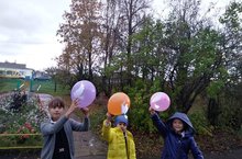 Сегодня в школе прошел Единый час духовности "Голубь мира". В небо были выпущены шары с голубями, на которых были написаны имена погибших участников войны и труженников тыла.