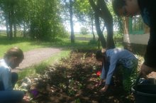 Сегодня в лагере труда и отдыха - День Земли. Ребята занимались благоустройством территории школы, высаживали рассаду цветов. После обеда прошло спортивно-развлекательное мероприятие "Мы ребята смелые, ловкие, умелые."