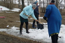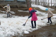 В школе продолжается двухмесячник по санитарной очистке территории, сегодня коллектив школы продолжил работу по ворошению снега.