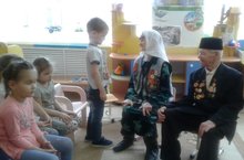 В ДОУ "Чулпан" сельский библиотекарь Султанова Т. провела беседу о войне с воспианниками. Дети рассказывали стехи воинных лет.