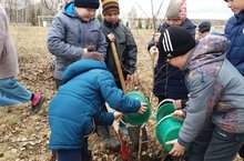Бүген Сармашбаш башлангыч сыйныф укучылары мәктәп янында агач утырттылар.